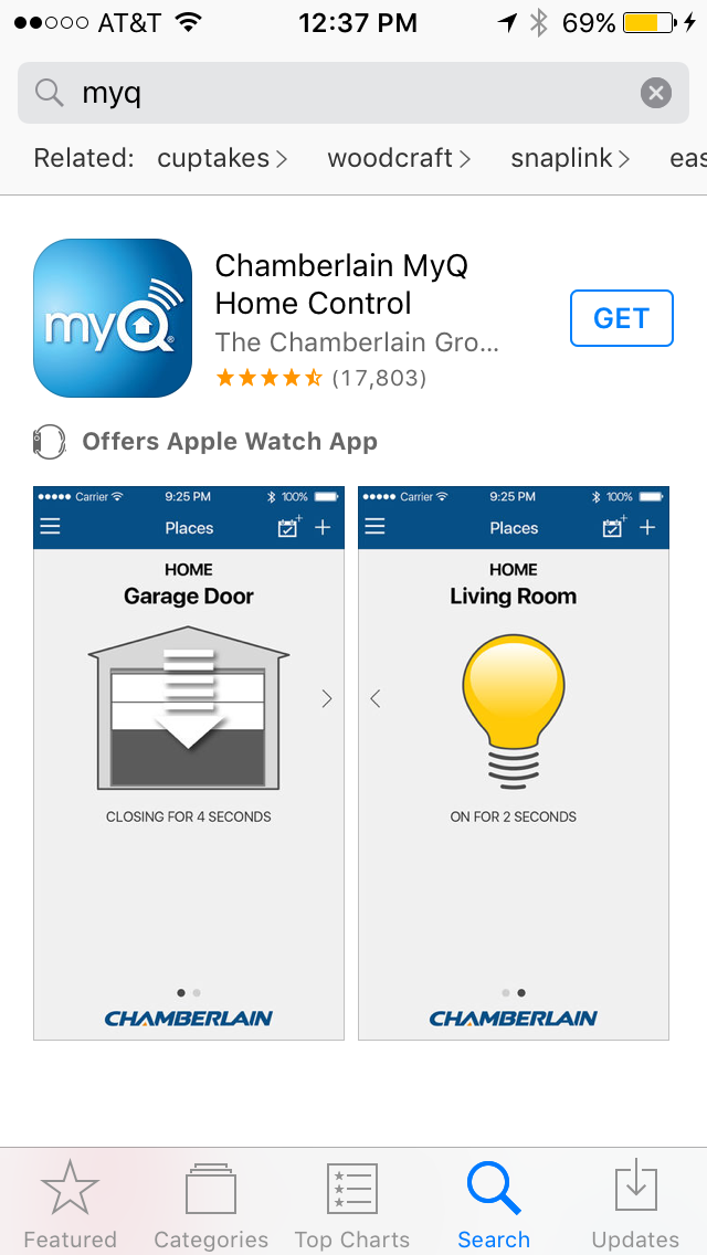 Regarding smart home devices, Chamberlain's MyQ Garage is compatible with a few smart home devices and connected hubs like Wink, Samsung SmartThings and Nest. If you own an Apple HomeKit, you can get Chamberlain's new MyQ Home Bridge to control both your MyQ Garage Door opener and all your Apple HomeKit devices. We would like to see more smart home devices compatible with MyQ Garage as well as a security camera built into the hub. Having videos of who is coming into your garage would be nice.