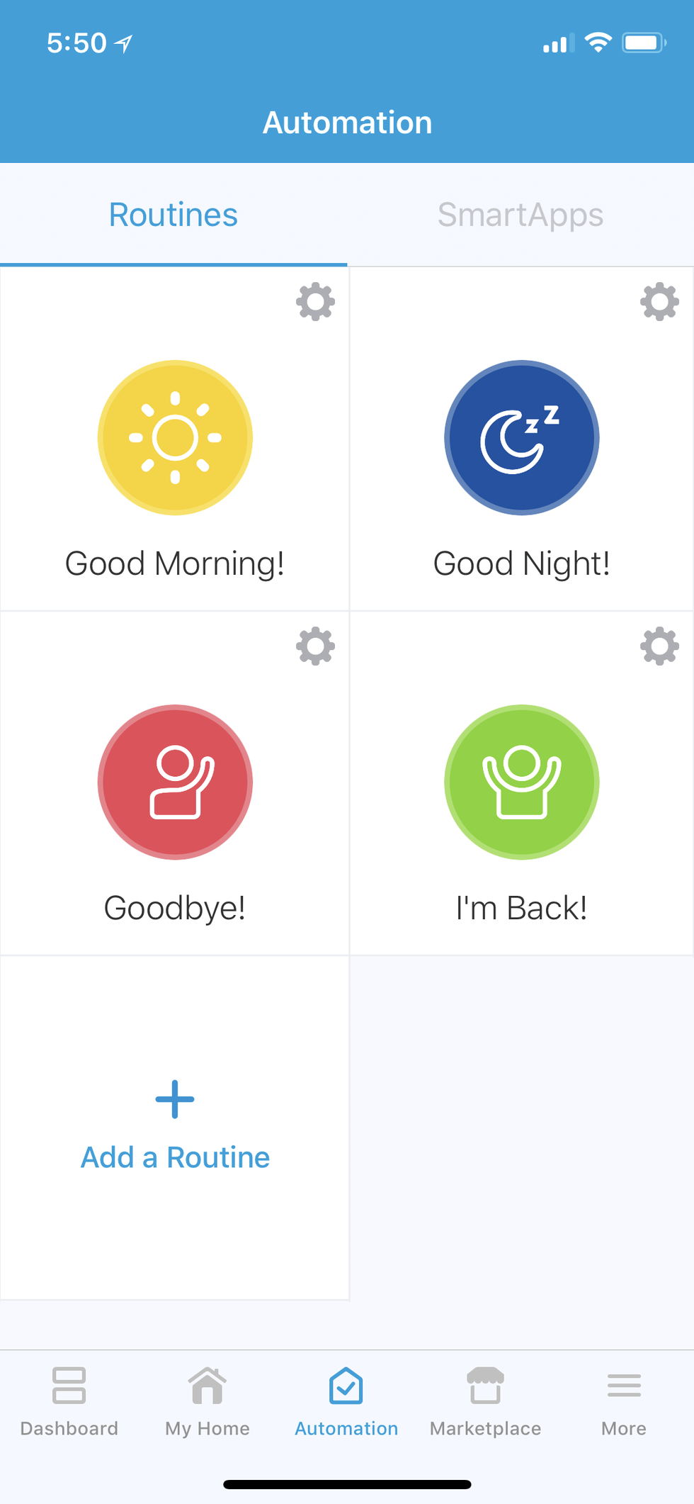 There also are four pre-configured smart home Automation Routines – 'Good Morning!,' 'Good Night!,' 'Goodbye!' and 'I'm Back!' You configure each routine once you add other compatible smart devices (lights, locks, thermostats, etc.) listed in the Marketplace tab to the system to act all at once. I smoothly added my Lutron Serena shades and my Amazon Alexa. I was unable to add my Philips Hue, however.