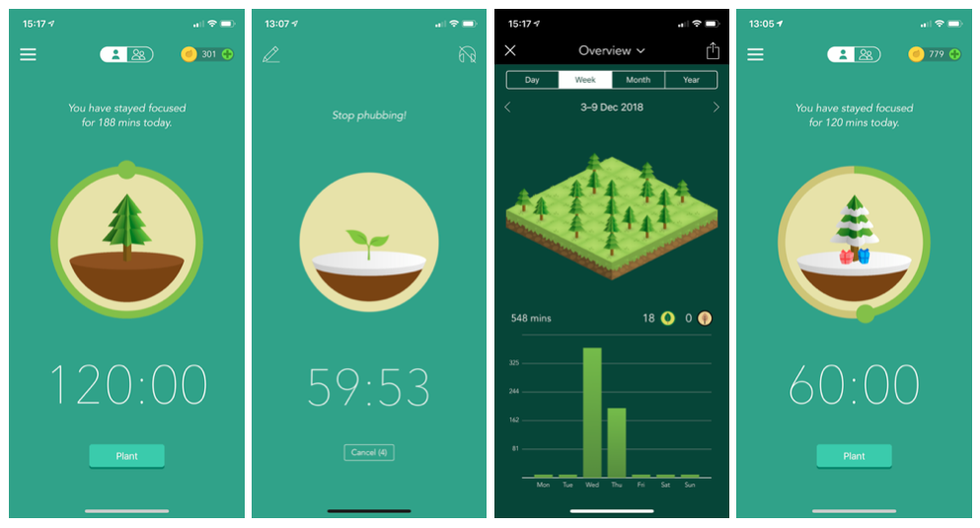 I can see the app being used socially too, where a couple can both plant a tree as they sit down for dinner, then not touch their phones for an hour. Their attention is directed at each other, and they'll both get a reward from the app in an hour's time.