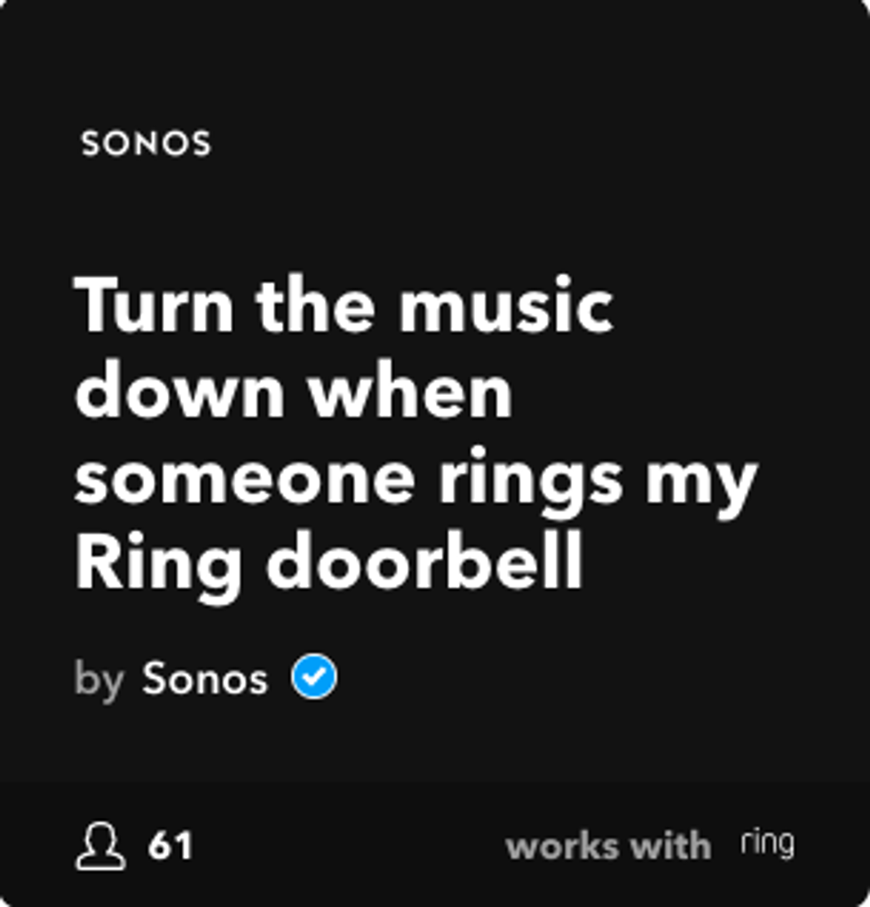 With IFTTT, your Sonos speakers can automatically switch on and off when you return home or leave (based on the location of your phone). Even more usefully, your speakers can lower their volume when you answer a phone call, or when a visitor presses your Ring doorbell.