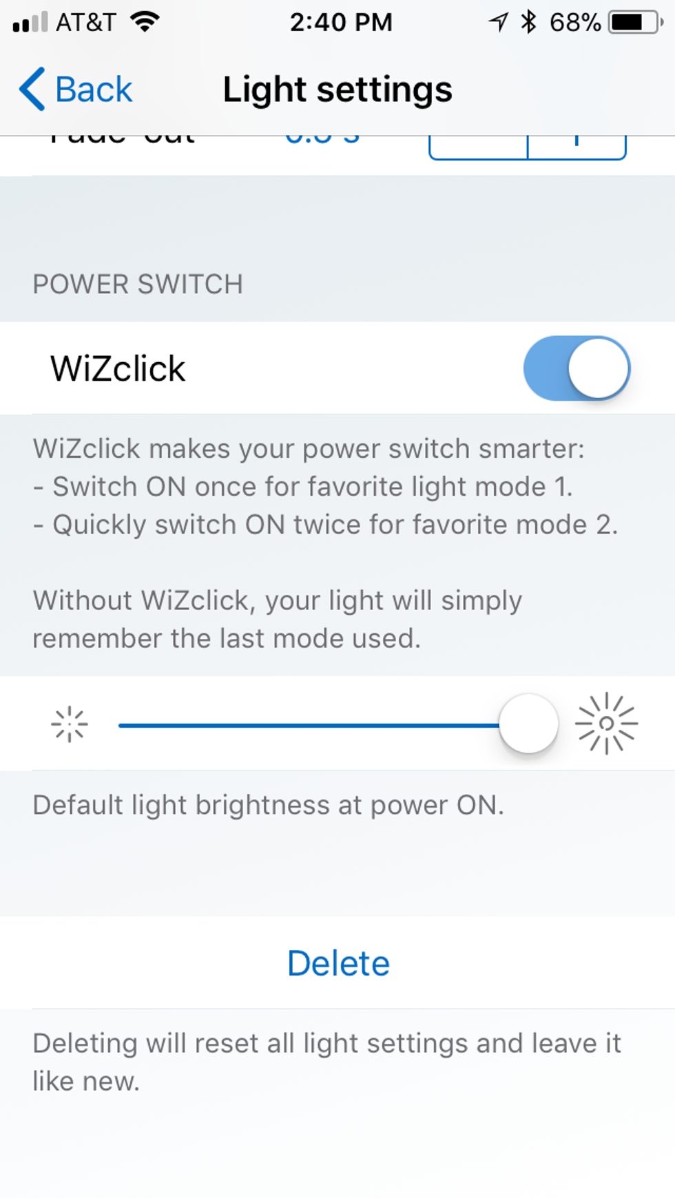 Wiz offers Wizclick which makes your light switch, effectively smarter, with setup done through the mobile app. Here is how it works. First, go to your Wiz app and make sure your Wizclick power switch is enabled. Then, turn on your light with the Wiz bulb. Once on, Wiz recognizes it as the first favorite light mode. If you turn the light off and then back on a second time within 5 seconds, the second favorite mode is also recognized on the second button of the remote. If your favorite two buttons have defined light modes, these two light modes will be recognized in the room with Wiz Lights just by turning the light switch on or off. We think this is an interesting feature for the individual who doesn't mind using their light switch to turn their lights on and off.